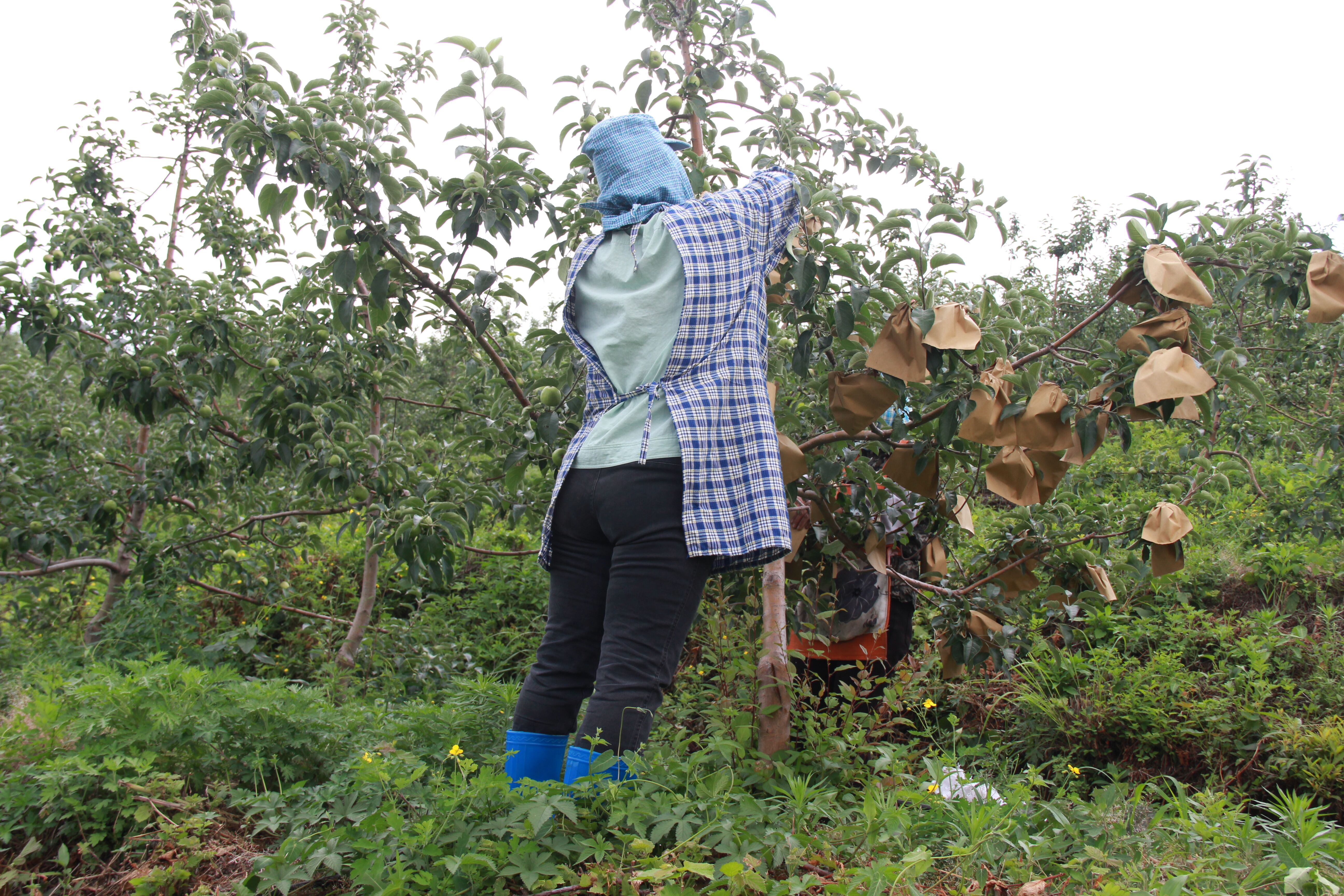 據(jù)果農(nóng)介紹,蘋(píng)果套袋是生產(chǎn)高檔、綠色、無(wú)公害蘋(píng)果的重要技術(shù),可以減輕病蟲(chóng)害危害,降低農(nóng)藥殘留,提高蘋(píng)果品質(zhì)。